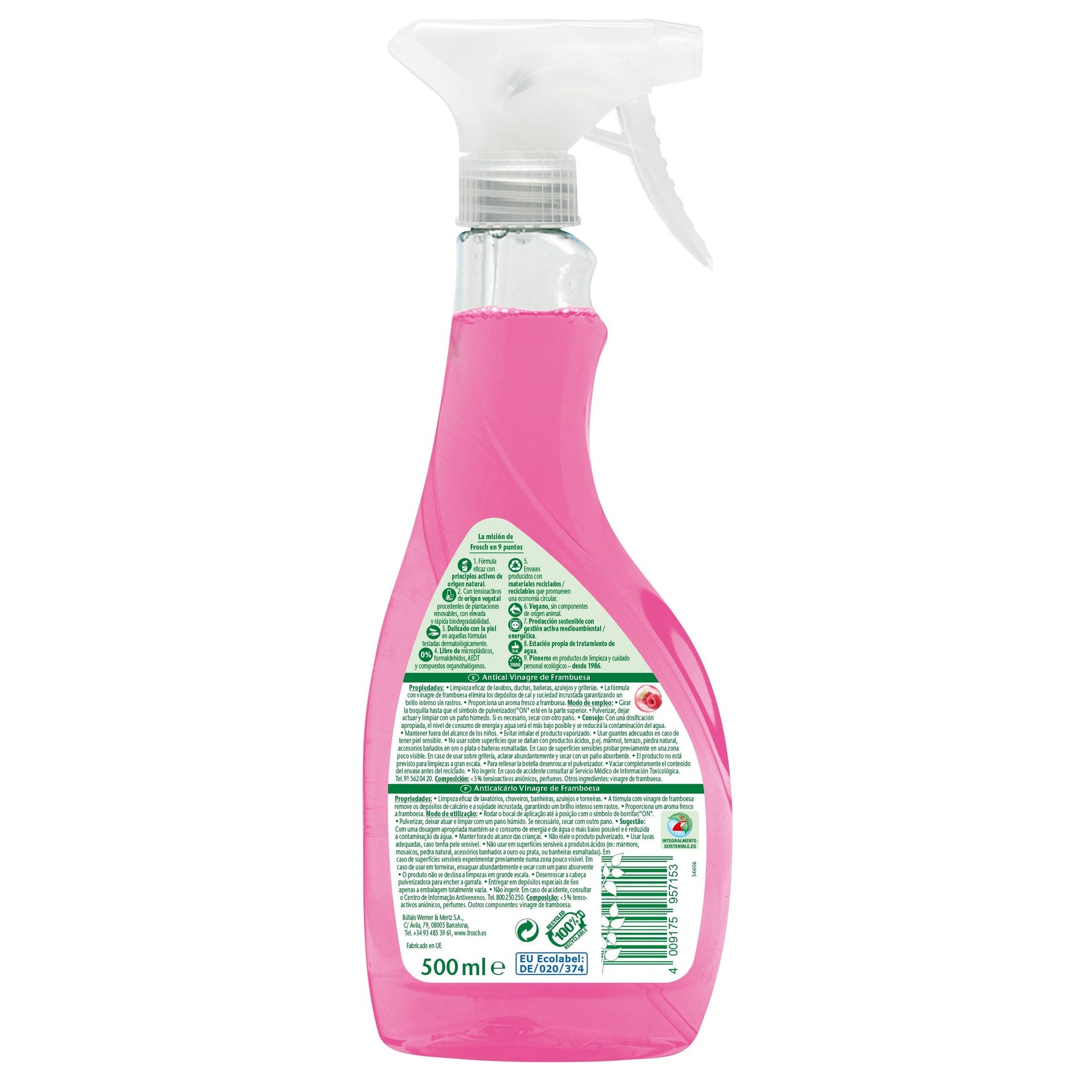 Su fórmula con vinagre de frambuesa consigue una limpieza eficaz, eliminando los malos olores y dejando un perfume agradable y fresco a frambuesa.