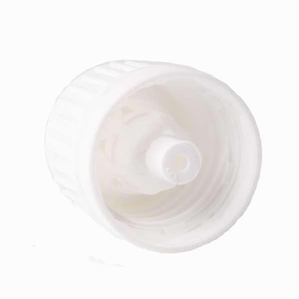 Tapón gotero de color blanco diseñado para su uso con botellas de vidrio ámbar, azul o violeta con rosca de 18 mm. Ideal para dosificar líquidos de forma precisa y evitar derrames.
