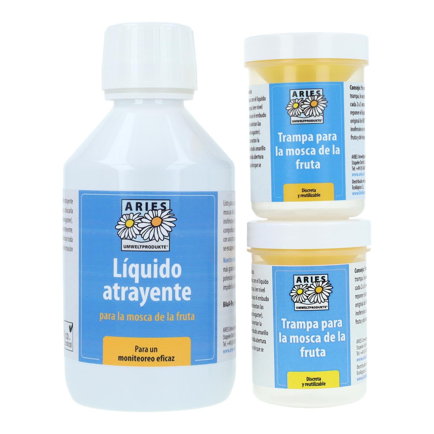 Trampa mosca de la fruta Aries Set 2 trampas + 1 botella 250 ml