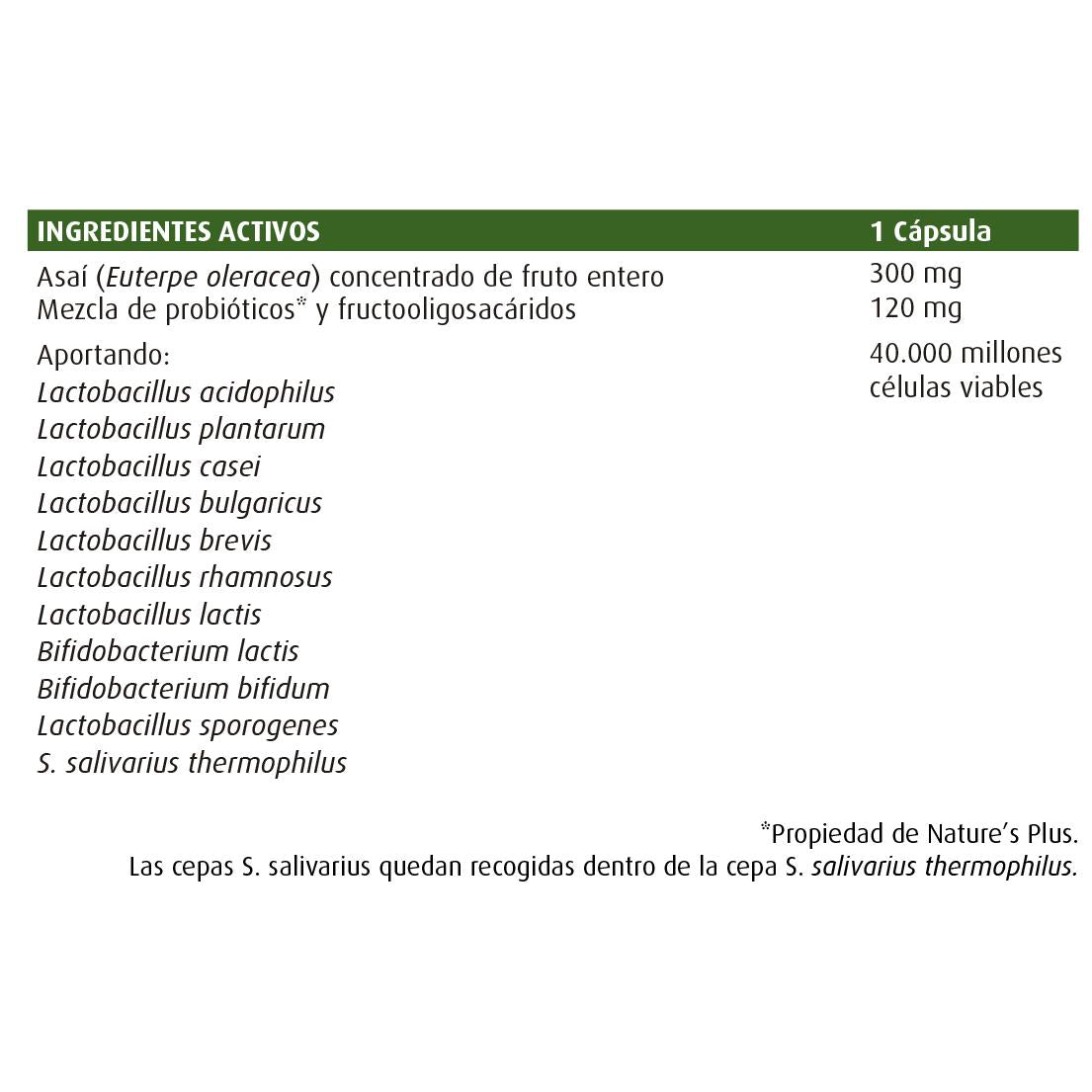 Complemento simbiótico a base de bacterias amigas y fructooligosacáridosdel asaí. Sin gluten.