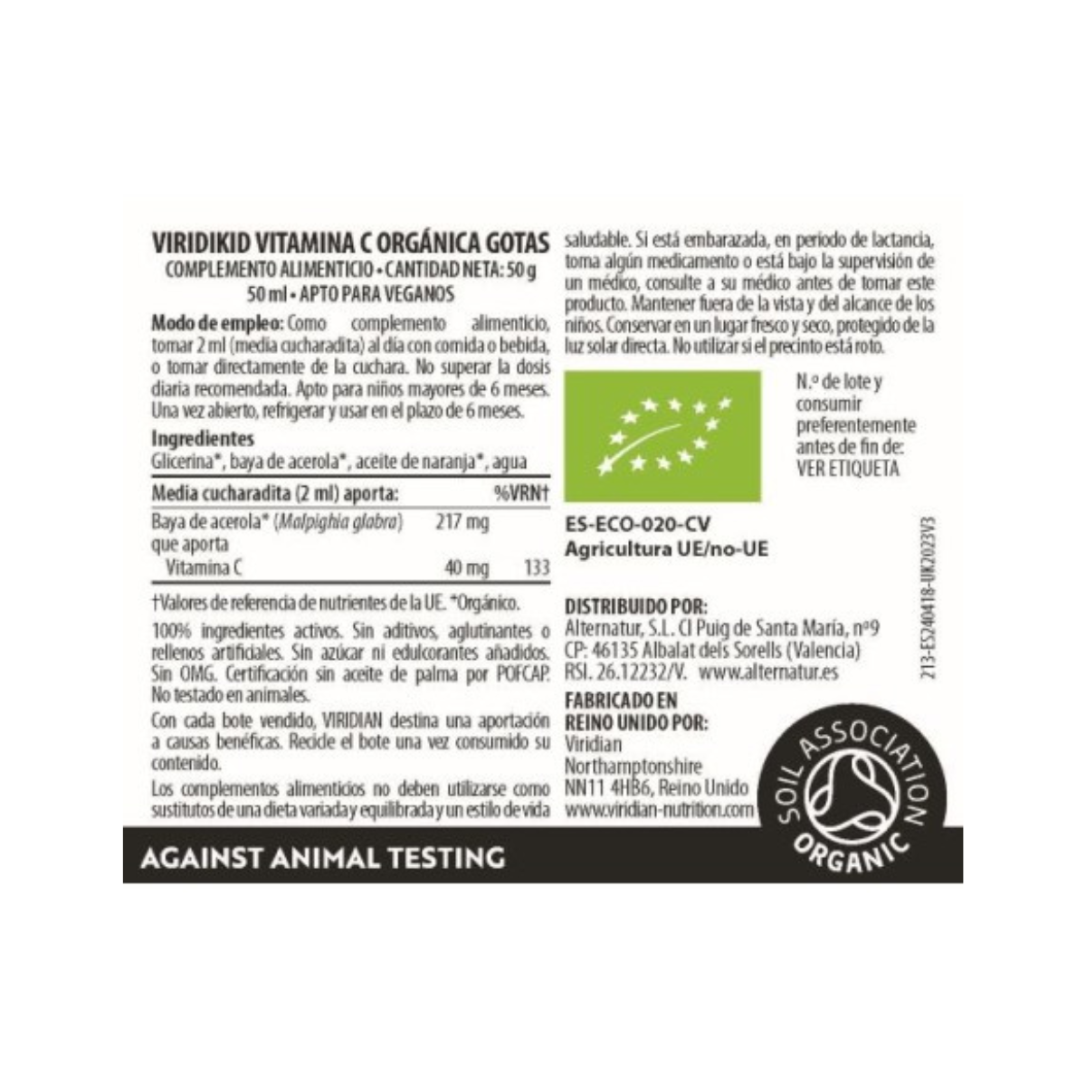 Toda la información sobre "Viridikid vitamina C orgánica gotas Viridian 50 ml"