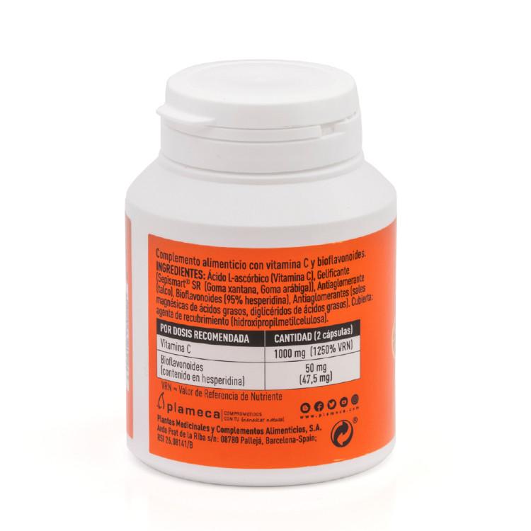 La vitamina C además está enriquecida con Bioflavonoides para proporcionar la máxima absorción de la Vitamina C y con efecto retard, para una acción mucho más prolongada. La Vitamina C es un nutriente esencial, es decir, nuestro organismo no produce ni almacena esta vitamina, por lo que debemos obtenerla de nuestra dieta diariamente. 1000 mg de Vitamina C pura (1250% VRN) equivale a un consumo de 14 naranjas.