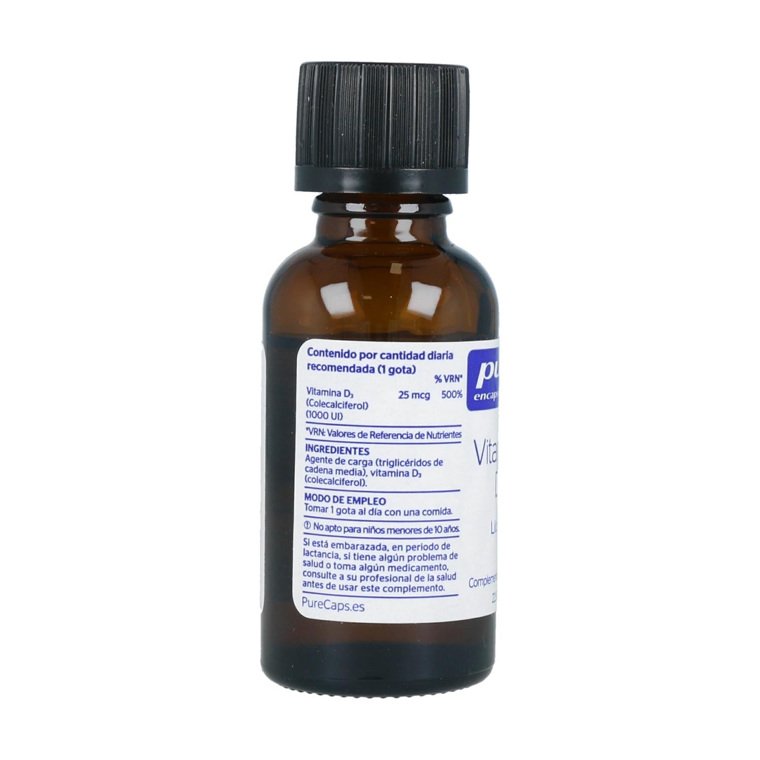 Pure Encapsulations® Vitamina D3 líquido contiene 1000 UI de vitamina D3 por gota en una base de triglicéridos de cadena media, sin ingredientes con alérgenos potenciales. Contiene 810 gotas a 1000 IU por envase con cuentagotas.