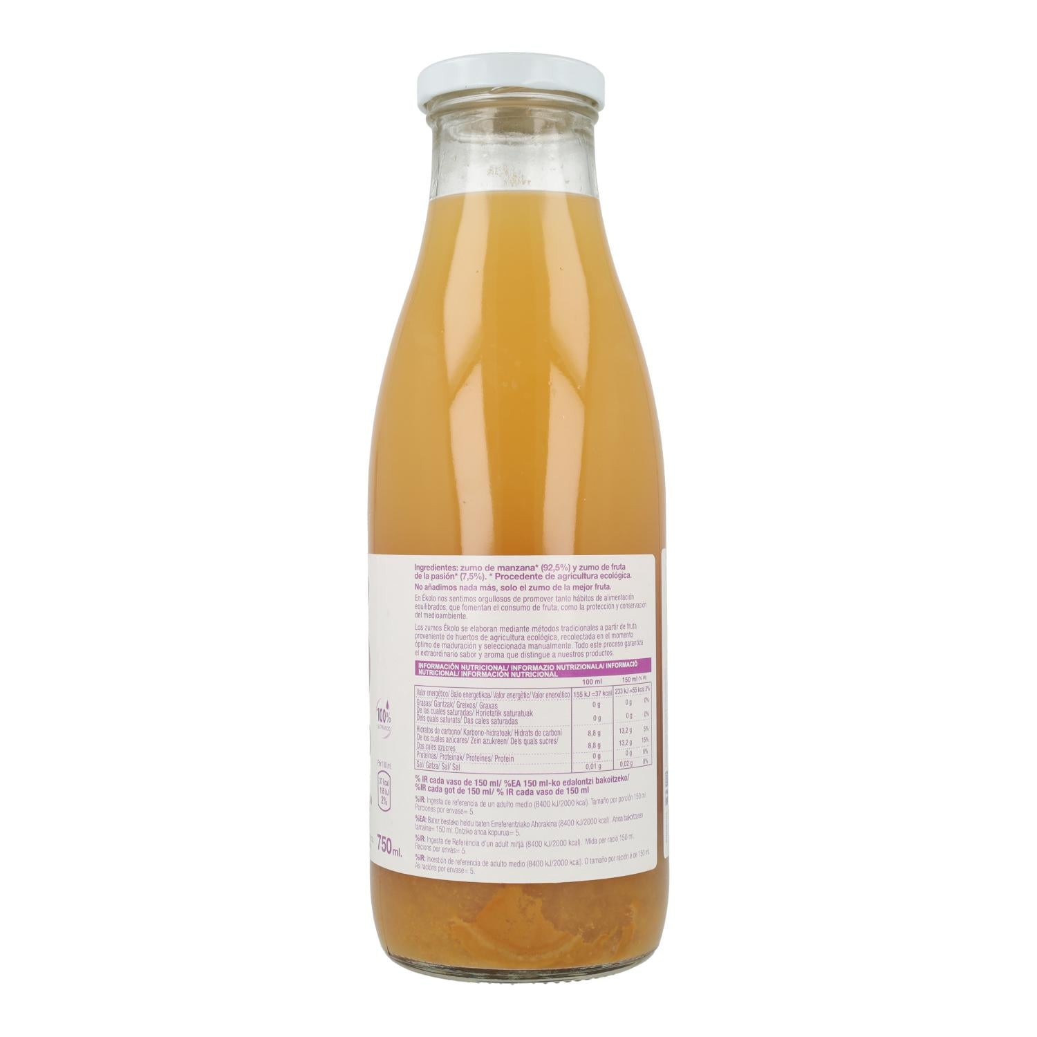 Zumo manzana y fruta de la pasión 100% exprimido Ékolo Bio 750ml